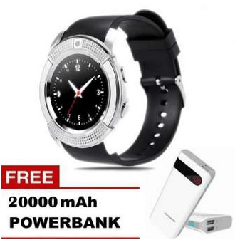 V8 Smart Watch With Camera and Support’s Memory Card Plus Free 20000mAH Sunsonice Powerbank