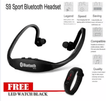 S9 Sports Wireless Bluetooth Headset Stereo Earphone With Free Led Bracelet Watch